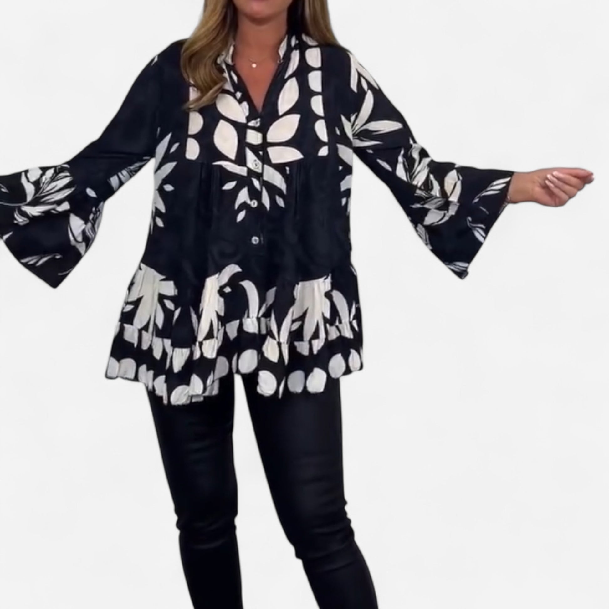 Alix - Blouse Élégante à Manches Évasées et Col V Chic