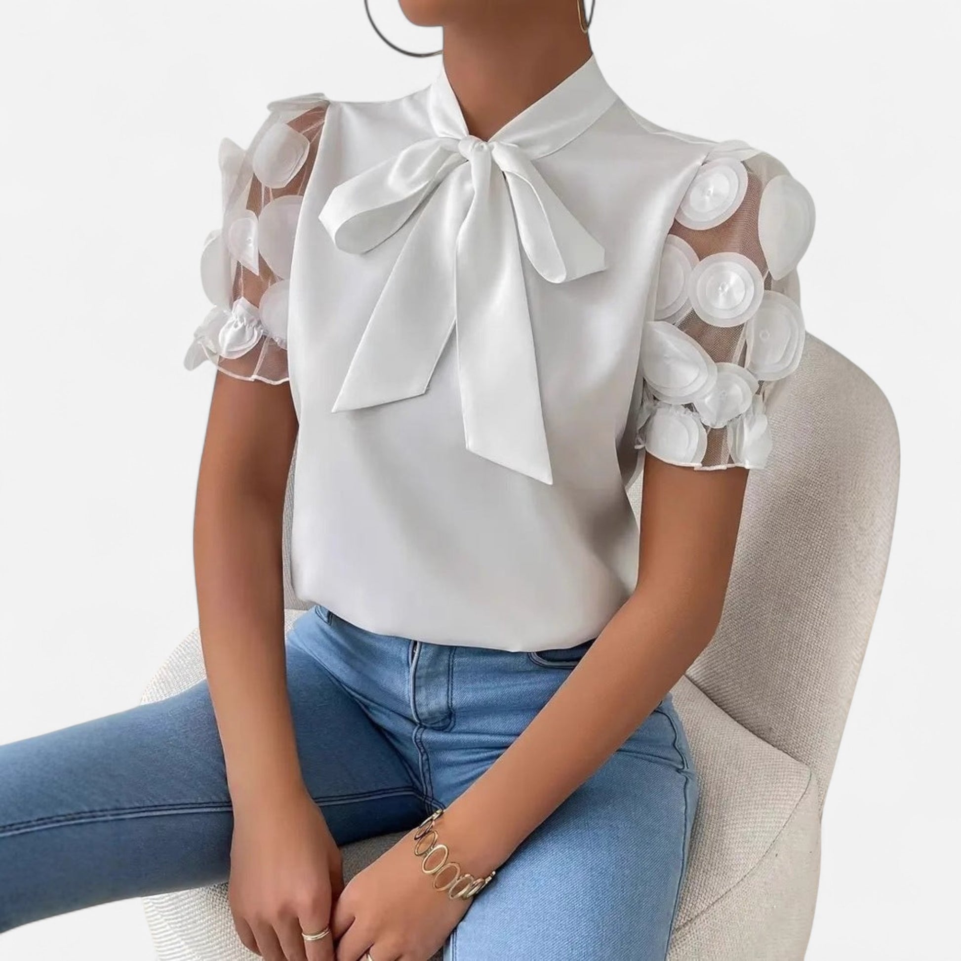 Cirelle - Chemisier d'été en dentelle avec nœud et manches courtes