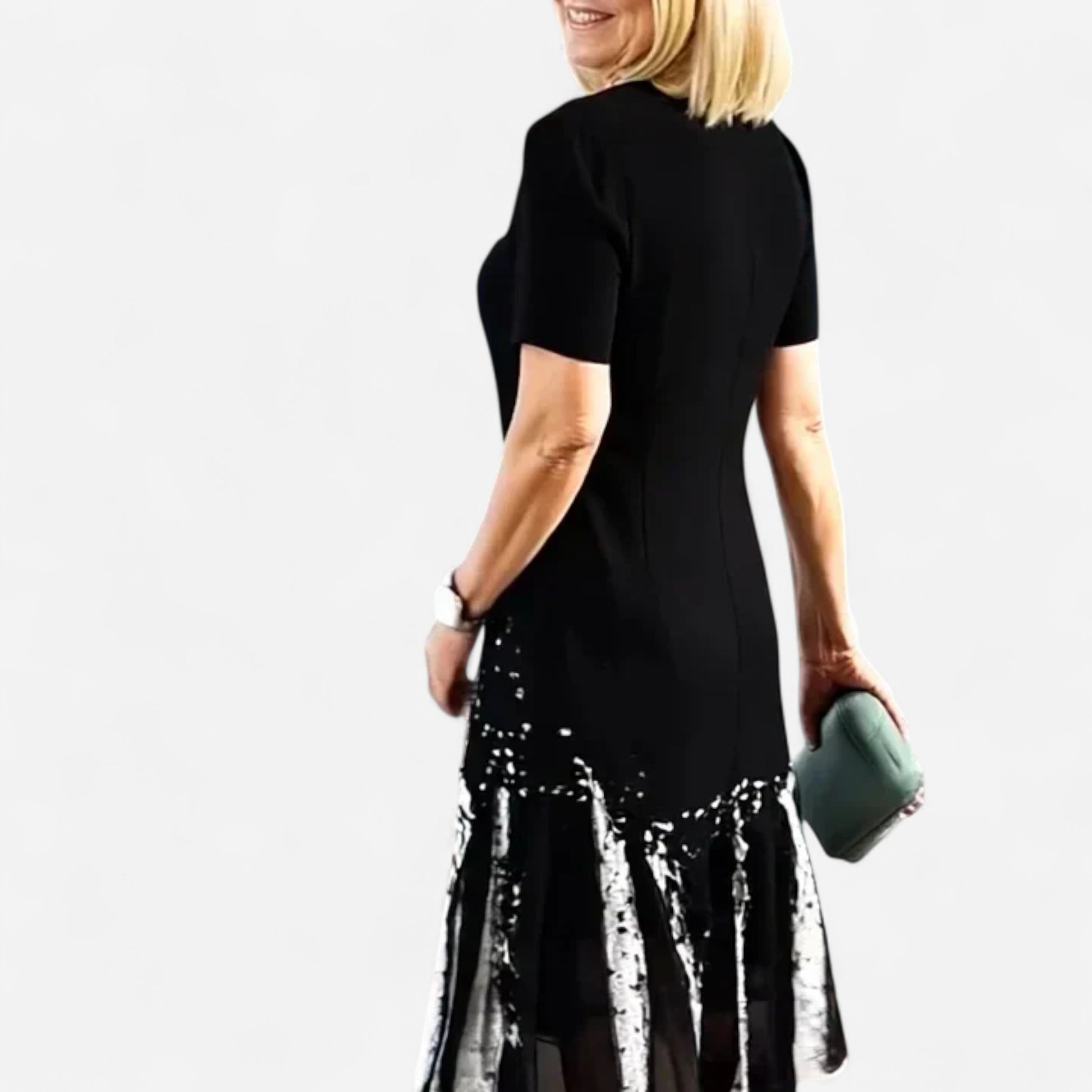 Dalia - Robe Plissée Femme Élégante avec Blocs de Couleurs