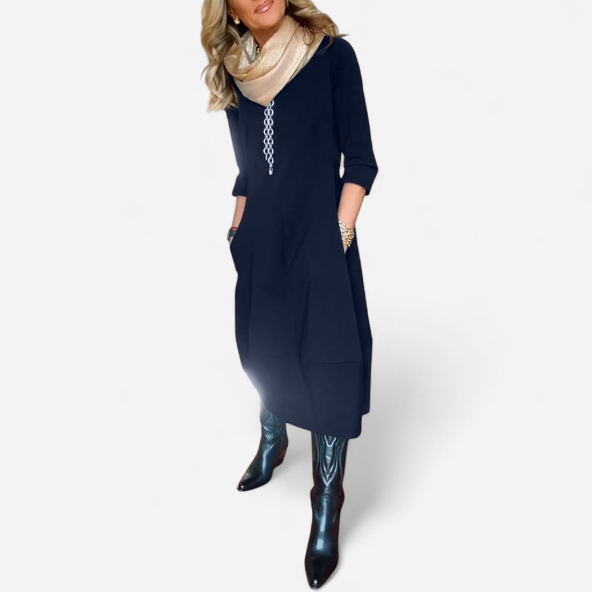 Actuelles tendances: Cette robe s'inscrit parfaitement dans les tendances actuelles, idéale pour l'automne et l'hiver, où le confort rencontre l'élégance. Que vous assistiez à un événement formel ou que vous profitiez d'une journée décontractée, cette robe est le choix parfait pour un look chic et intemporel.