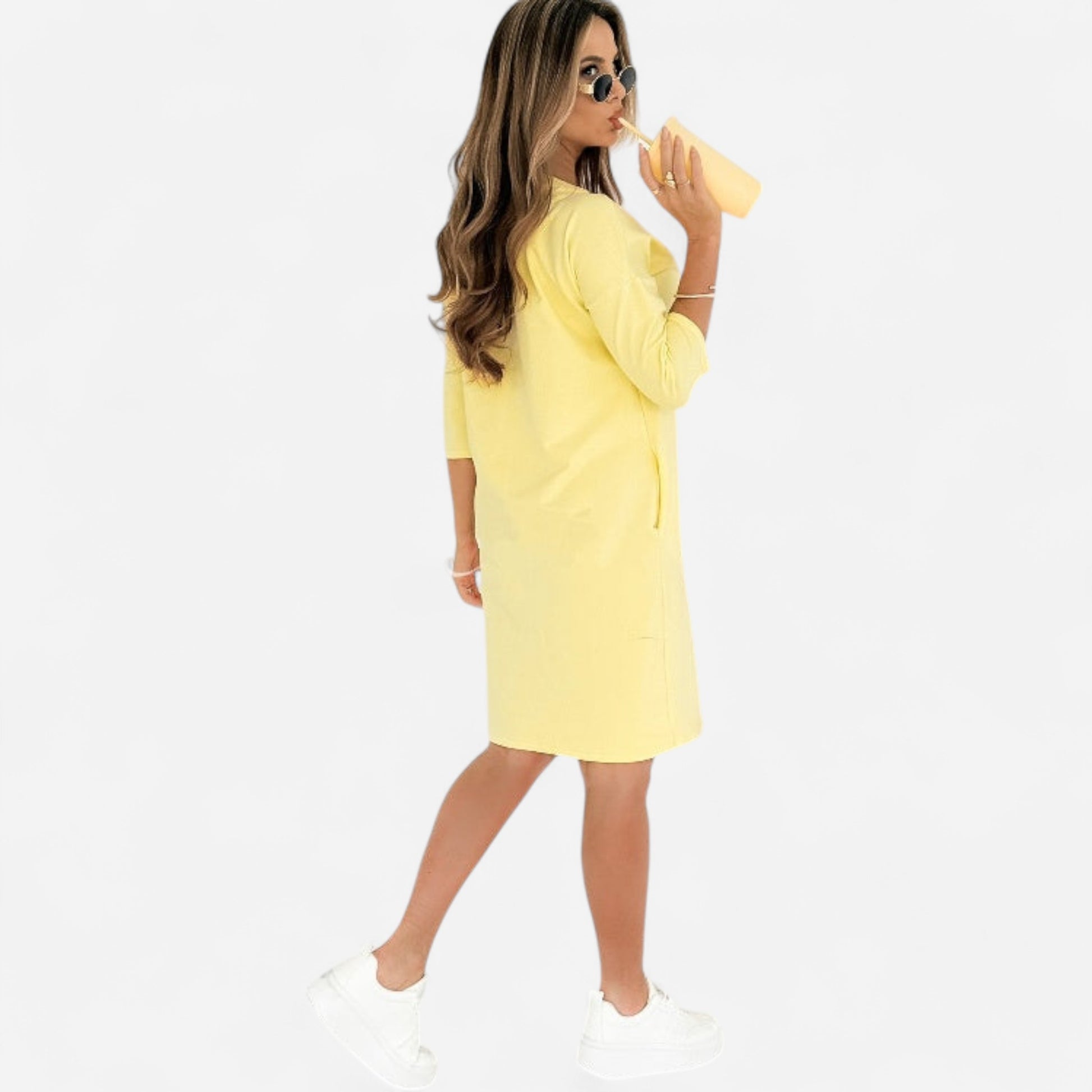 Robe Décontractée Élégante avec Manches 3/4 et Poches Pratiques - Style et Confort