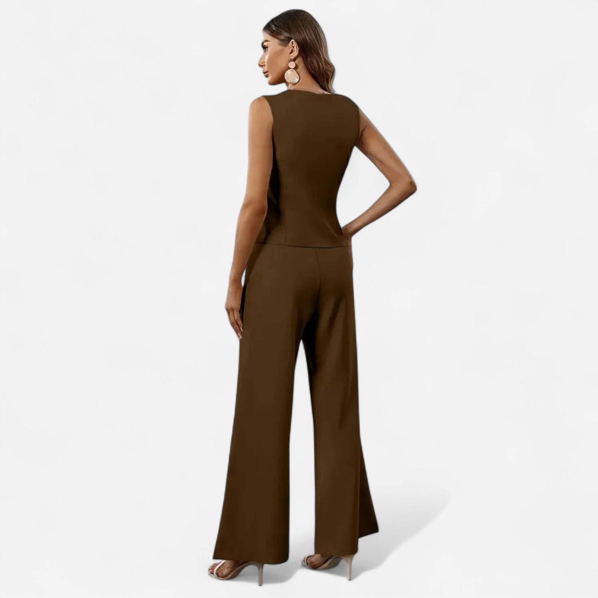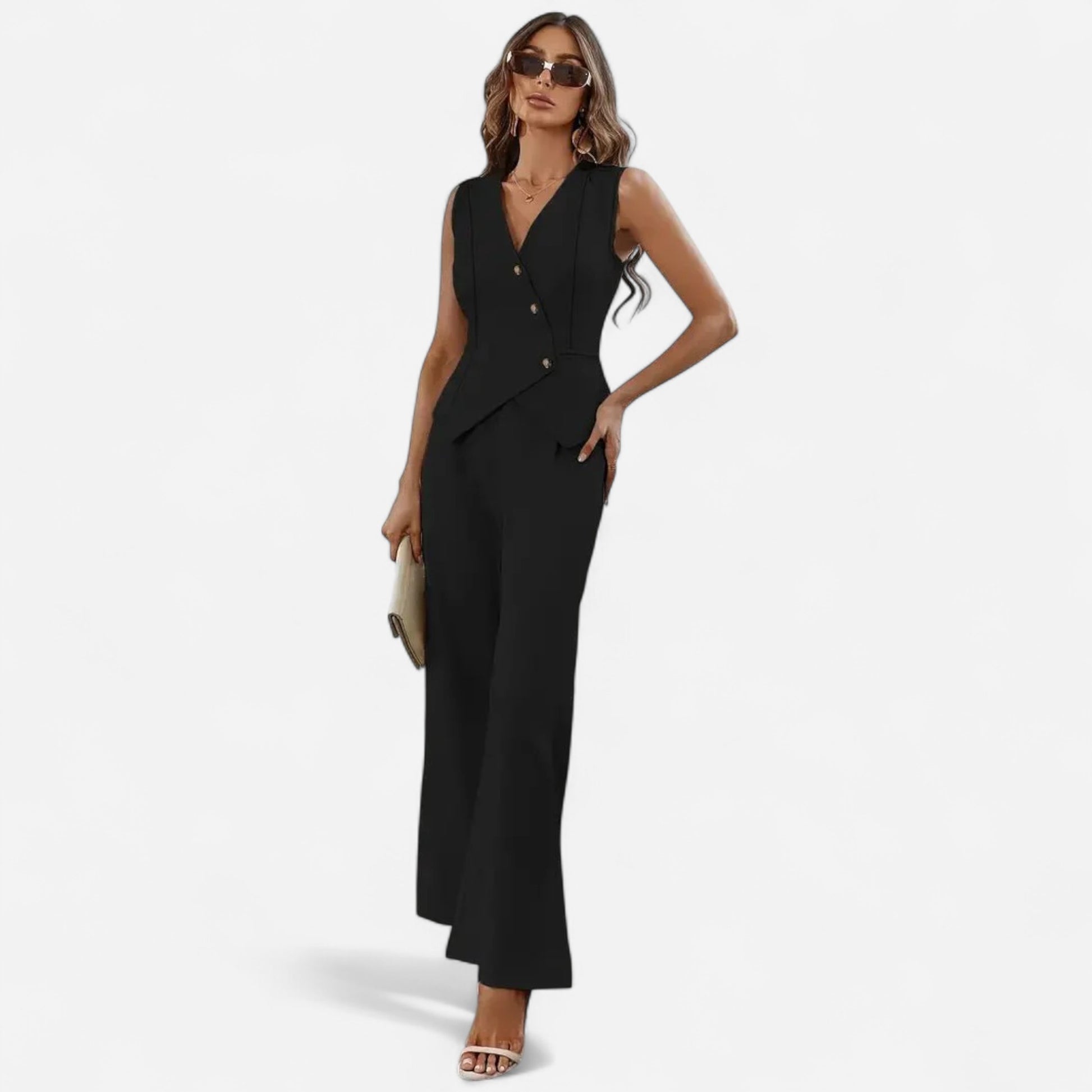 Pantalon Combinaison Sans Manches Élégant - Veste Asymétrique Ajustée