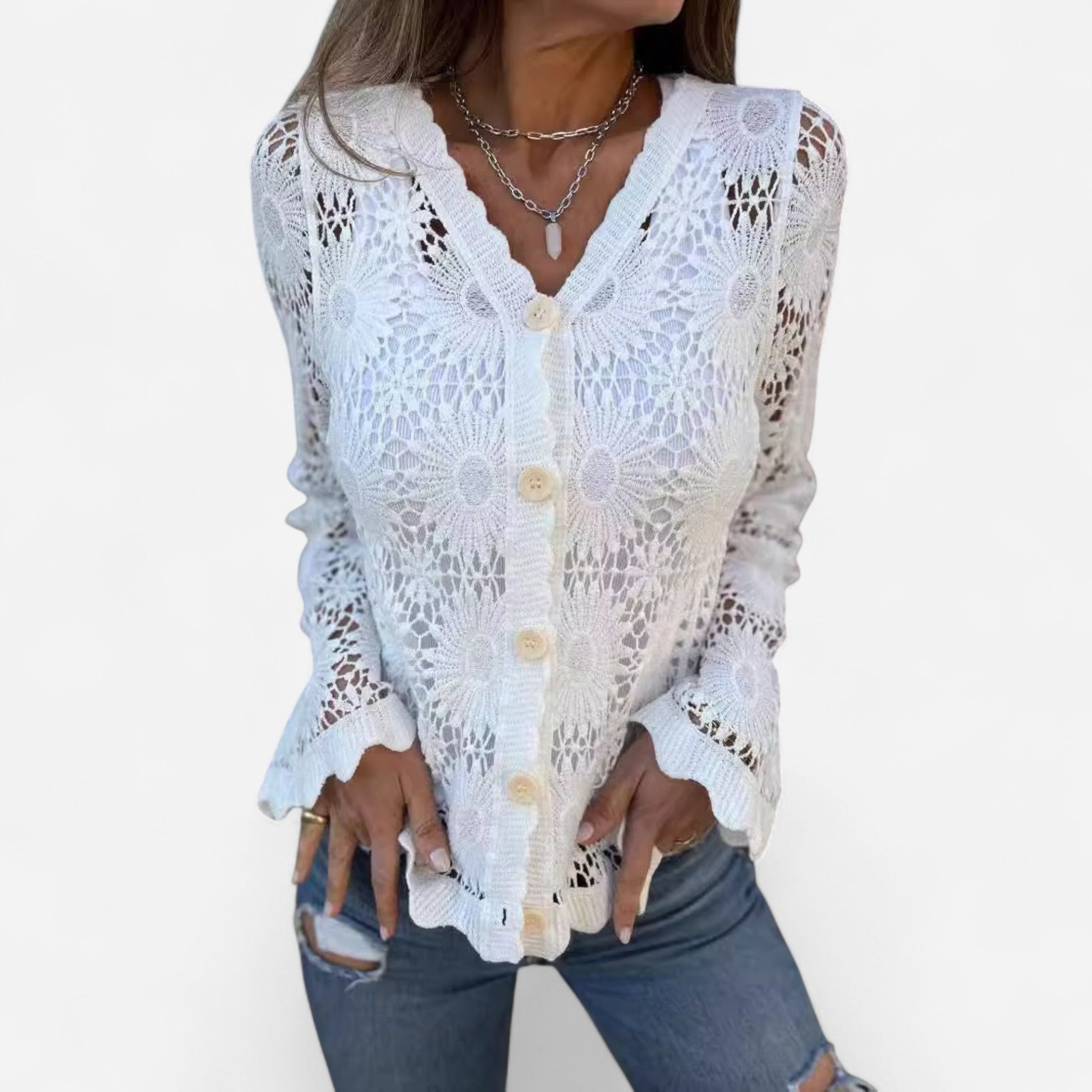 Zinnia - Haut en Dentelle à Col V et Manches Longues Élégant pour Femme